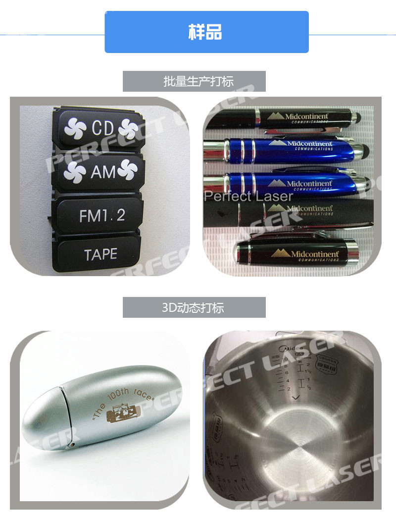 打標(biāo)效果良好:高精度細(xì)致光斑確保了打標(biāo)效果的良好。配備高速高精度振鏡激光打標(biāo)頭,打標(biāo)效果精細(xì)并可重復(fù)加工。打標(biāo)過程無物理性接觸,打標(biāo)效果長久;