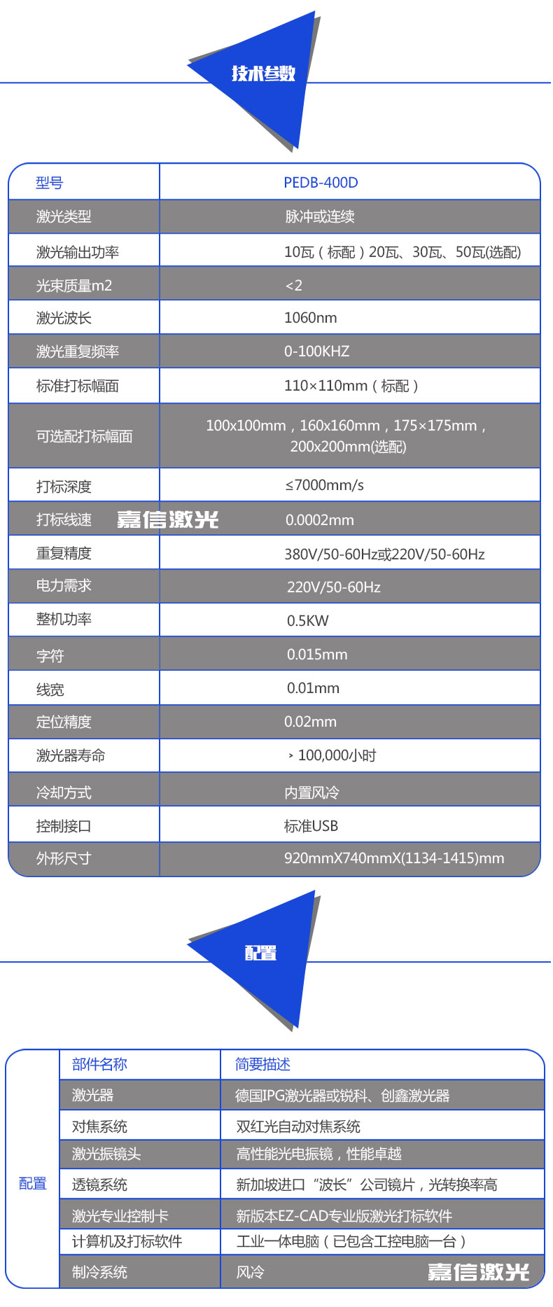 2. 進(jìn)口激光源:德國(guó)IPG 20W激光器,激光光束穩(wěn)定,打標(biāo)線條流暢精細(xì);