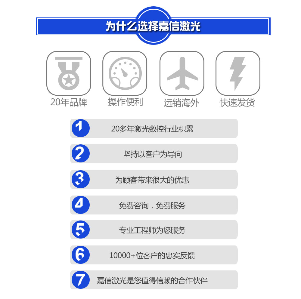 嘉信激光,成立于1995年,致力于為客戶(hù)提供激光設(shè)備全方位的技術(shù)支持和專(zhuān)業(yè)的銷(xiāo)售服務(wù),在業(yè)內(nèi)擁有良好的口碑。
