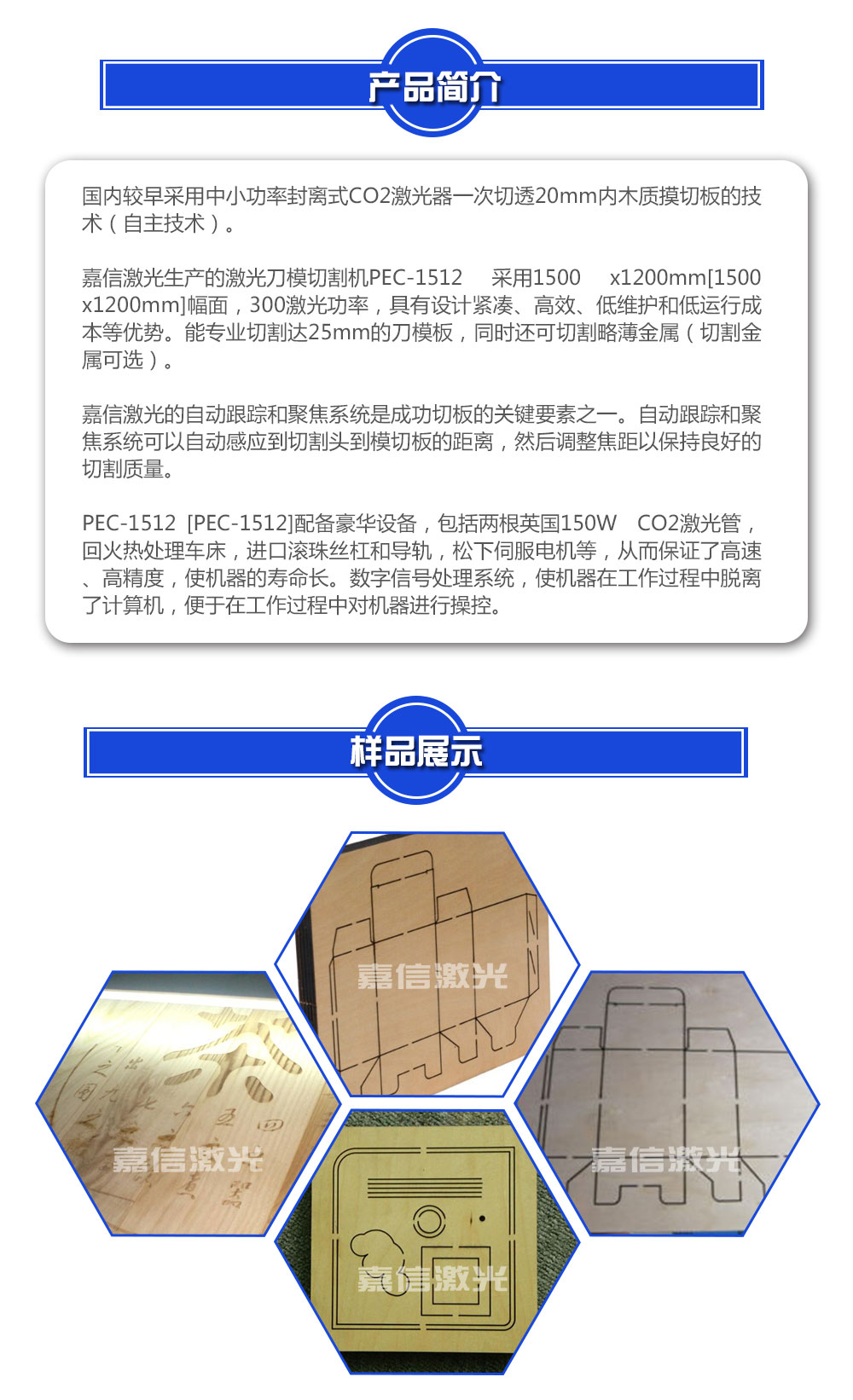 1.適用材料:主要用于刀模板切割,用來(lái)切割木材,中密度纖維板,竹,膠合板,亞克力等非金屬材料。
