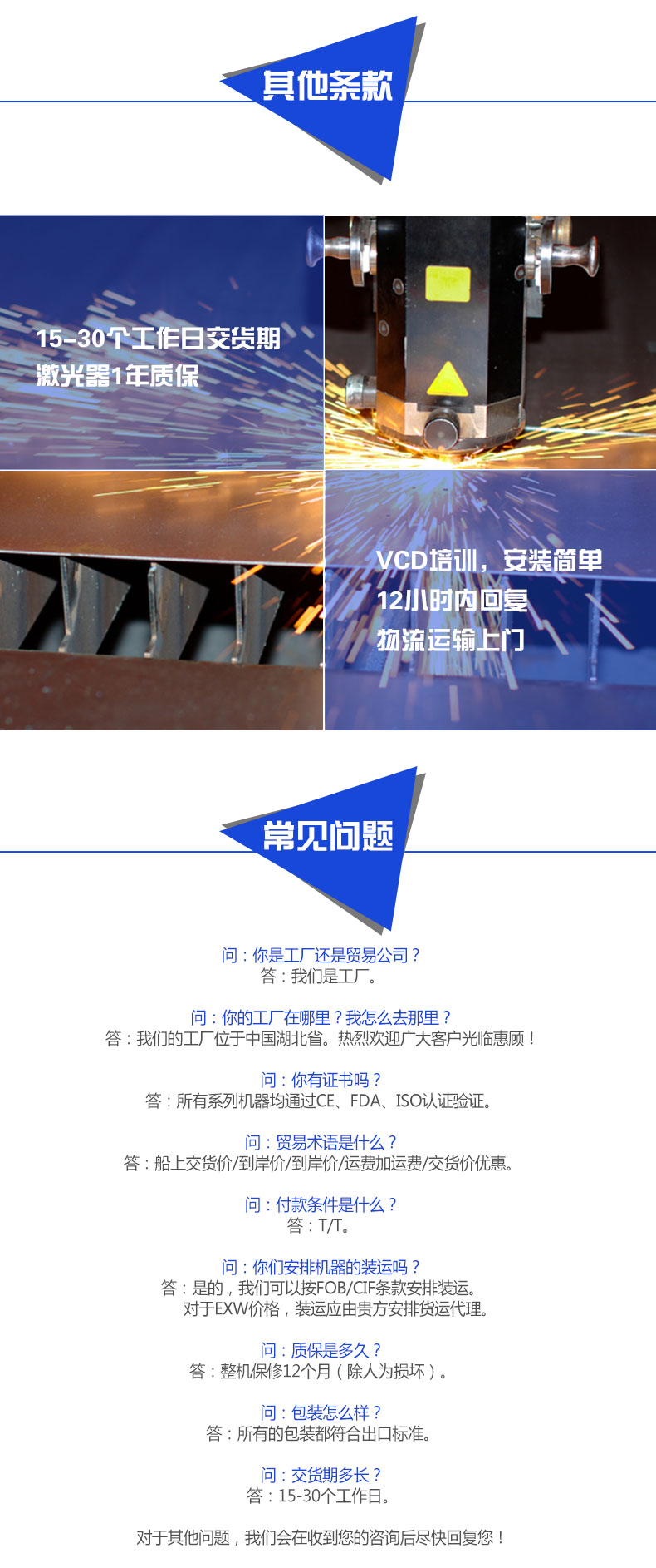 1.適用材料:光纖切割機(jī)可以切割不銹鋼、碳鋼、各種合金鋼、銅、鋁、鈦、鋁合金、鈦合金、酸洗板、鍍鋅板、鍍鋁鋅等各類金屬材料。