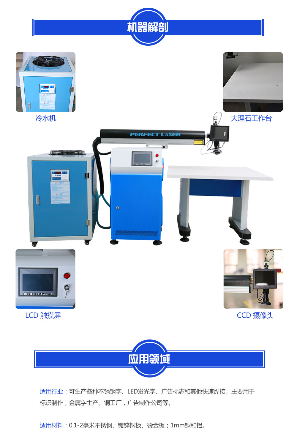 單光路廣告激光焊字機(jī)適用于各種廣告行業(yè),廣泛應(yīng)用于各種不銹鋼字、精工不銹鋼字、鈦金字、精工鈦金字、銅字、精工鋁字、鐵皮烤漆字(不銹鋼帶、鐵帶、低碳鋼帶)的廣告字等。