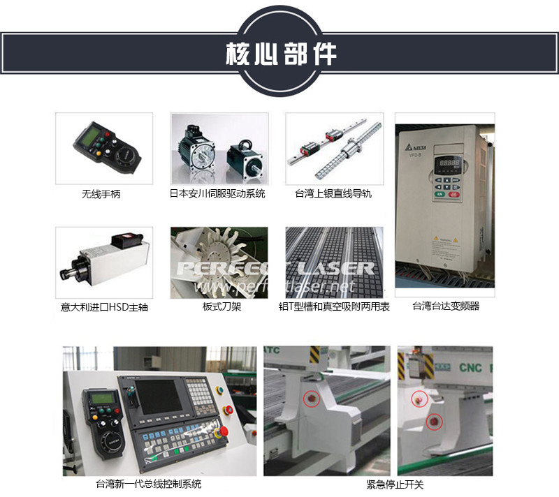 11.鋁型材T型槽與真空吸附兩用臺(tái)面:配備真空吸附、吸塵器裝置,六分區(qū)真空吸附臺(tái)面針對(duì)密度板等軟質(zhì)材加工設(shè)計(jì),也可放置不同大小的板材,保持板面的平整度,使刻出來(lái)的效果圖深淺一致,提高了加工以外的板材裝卸時(shí)間;吸塵系統(tǒng)可在加工過(guò)程中吸走木屑及碎沫,保持工作臺(tái)清潔,對(duì)設(shè)備進(jìn)行了保養(yǎng)。