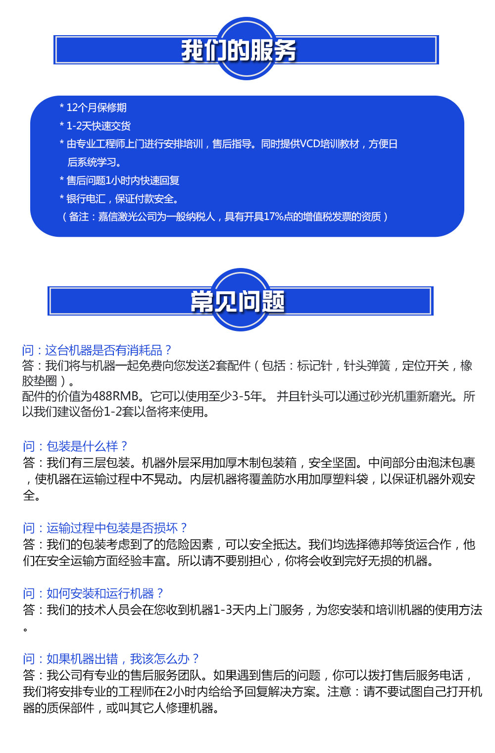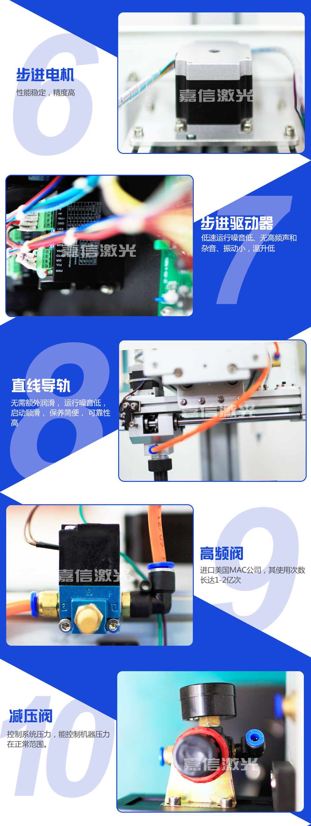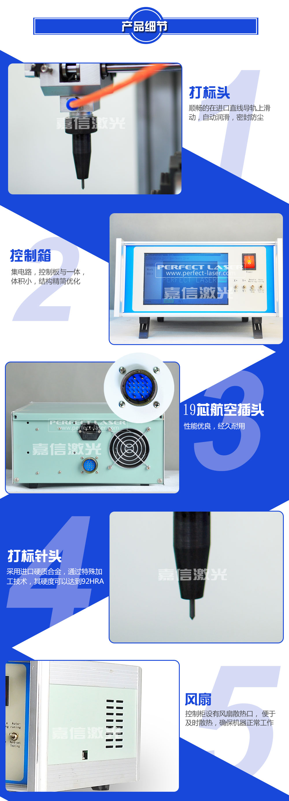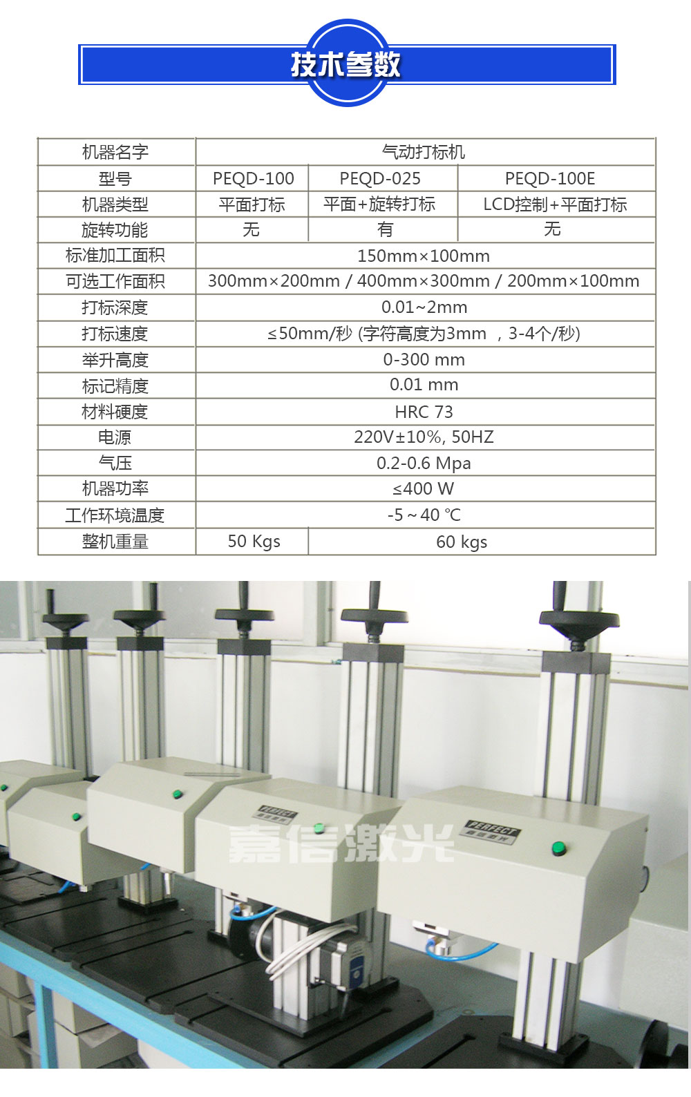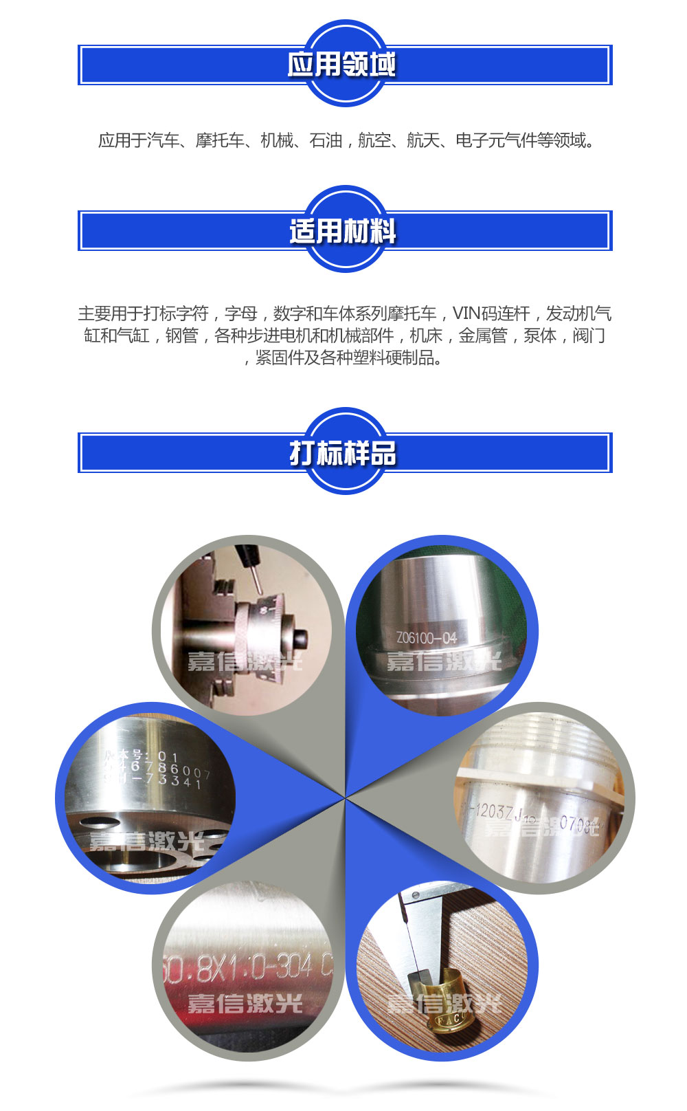 嘉信激光設(shè)計(jì)生產(chǎn)的旋轉(zhuǎn)氣動(dòng)打標(biāo)機(jī)技術(shù)成熟,運(yùn)行穩(wěn)定。在世界各地,每天都有無(wú)數(shù)臺(tái)嘉信激光的旋轉(zhuǎn)氣動(dòng)打標(biāo)機(jī)正安全、良好地運(yùn)行著,它們廣泛應(yīng)用于鋼鐵冶金、有色金屬、汽車及零部件、航天航空、軍工電子、精密儀器儀表、機(jī)械制造、模具、五金工具、集成電路﹑半導(dǎo)體制造、太陽(yáng)能、教育、通訊與測(cè)量、包裝、鞋材皮革、 塑料橡膠、珠寶首飾、工藝禮品等各個(gè)行業(yè),為世界各地用戶提供者優(yōu)良的品質(zhì)和服務(wù)。